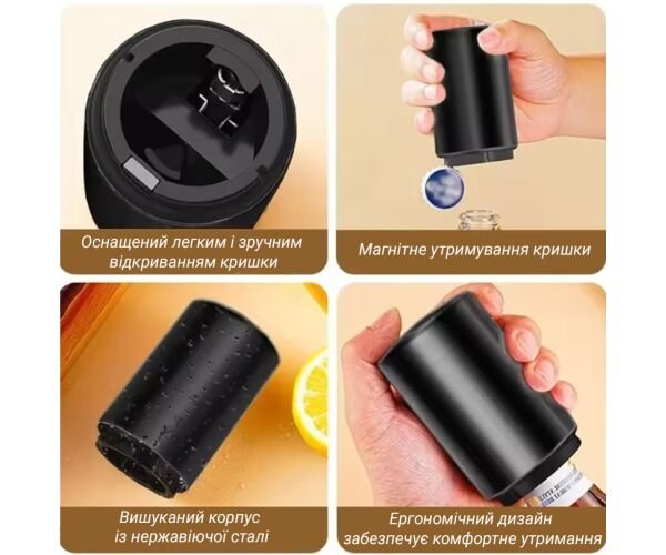 Однією з головних особливостей цієї моделі є магнітний механізм, завдяки якому кришка легко знімається одним рухом і одразу утримується всередині. Це означає, що кришки не падають на підлогу чи стіл, а процес стає більш акуратним. Ви можете відкрити напій буквально за секунду, без зайвих зусиль, що особливо зручно під час вечірок, святкувань чи зустрічей з друзями.