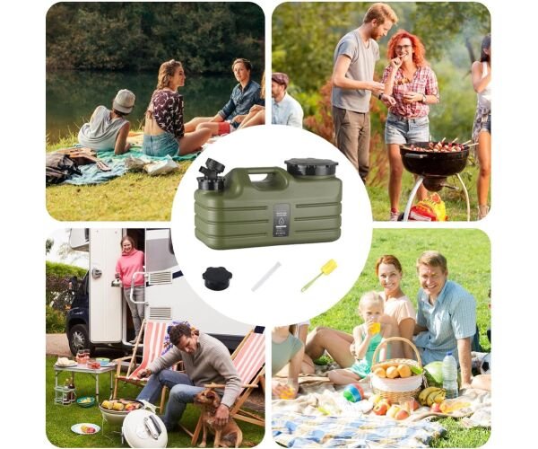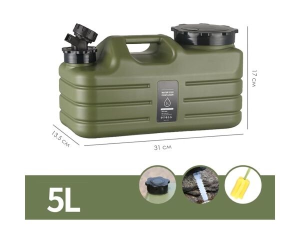 Каністра виготовлена з міцного поліетилену (PE) — легкого, надійного матеріалу, який підходить для регулярного використання. Поверхня стійка до подряпин, а корпус має рельєфні стінки для кращої стабільності. Широка горловина (10 см) забезпечує комфортне наповнення водою та спрощує очищення, а змінна кришка робить експлуатацію ще зручнішою.