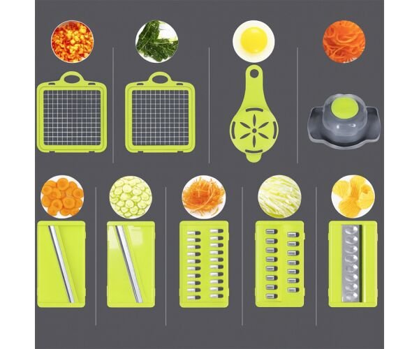 Овочерізка-подрібнювач 14 в 1 стане вашим головним інструментом для швидкого та зручного приготування страв.