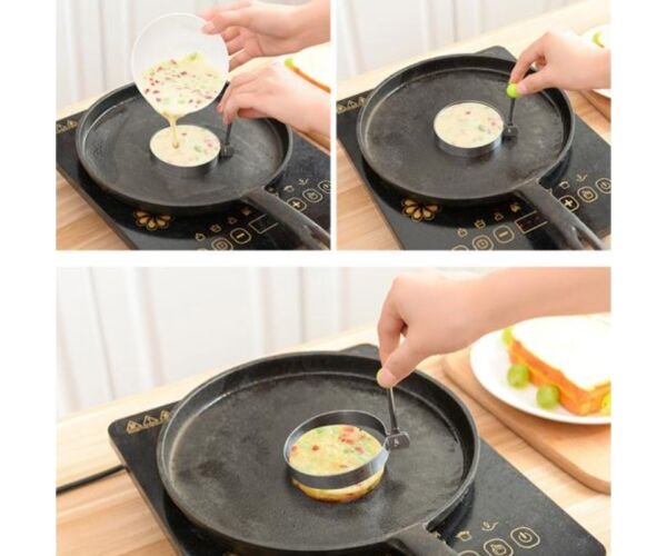 Форми дуже прості у використанні: достатньо покласти їх на розігріту сковорідку, злегка змастити маслом і влити яйце чи тісто. Завдяки високим бортикам інгредієнти не розтікаються, а готова страва виходить рівною й апетитною. Після приготування форми легко відмиваються під проточною водою або в посудомийній машині.