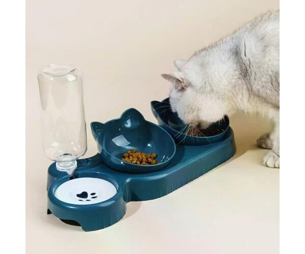 Така потрійна миска стане незамінною для власників кількох тварин або для тих, хто хоче забезпечити свого вихованця всім необхідним протягом дня. Дві глибокі чаші чудово підходять для сухого та вологого корму, а спеціальне відділення з поїлкою або дозатором гарантує постійний доступ до свіжої води. Це дозволяє тварині харчуватися у комфортних умовах, а господареві економить час та зусилля.