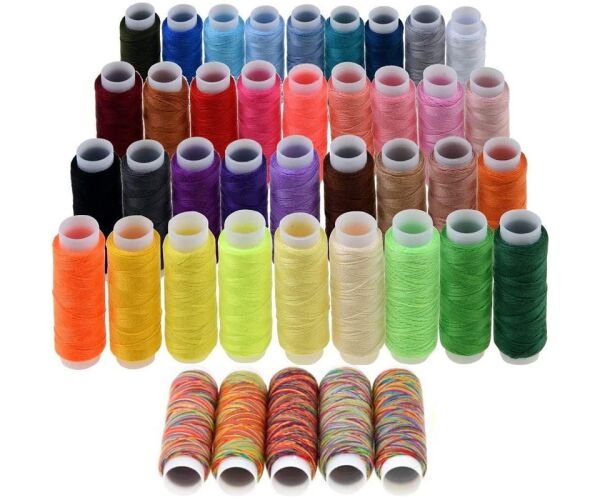 43 XL котушки з нитками. У наборі є 43 високоякісні котушки, включно з 5 багатоколірними. Вони мають яскраві, насичені відтінки, що дозволяють підібрати потрібний колір для будь-якої тканини.