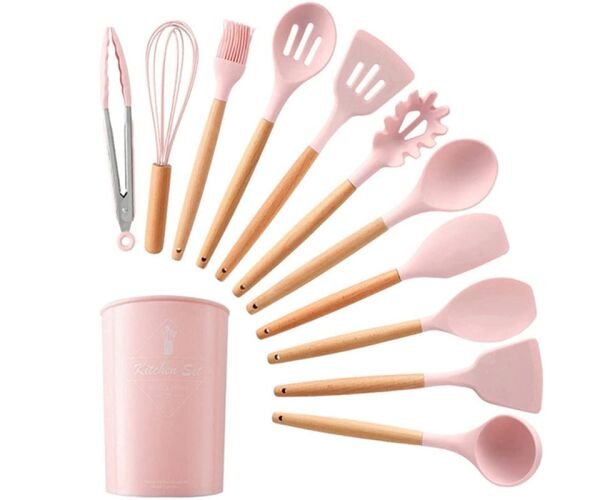 Набір кухонного приладдя з антипригарним покриттям, 12 предметів, термостійкий, рожевий