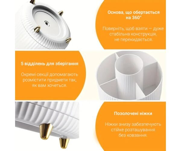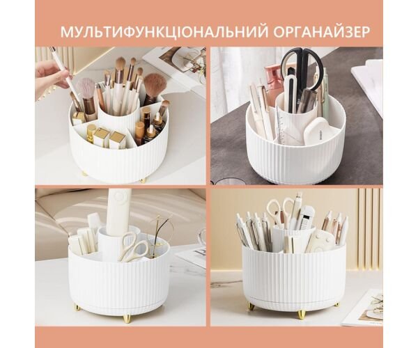 Органайзер для косметичних аксесуарів та канцелярського приладдя, обертовий, білий