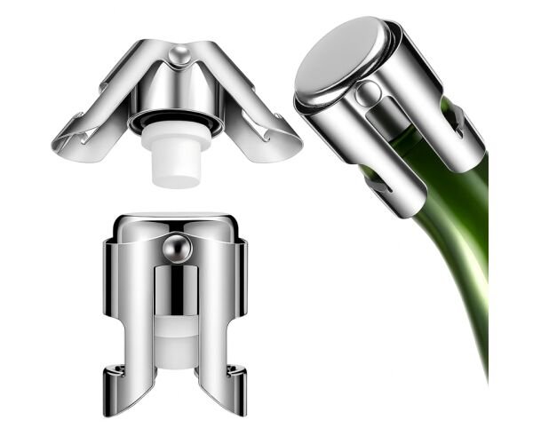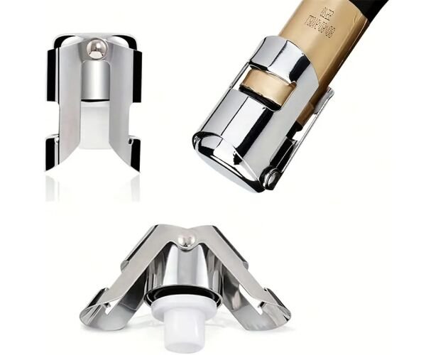 Металева пробка-затискач для скляних пляшок — це практичний та надійний аксесуар для кухні й святкових подій, який допоможе зберегти напої свіжими надовго. Завдяки спеціальній конструкції з фіксатором, пробка щільно закриває горло пляшки, захищаючи вміст від випаровування газів та втрати смаку. Це ідеальне рішення для шампанського, вина, газованих напоїв, олії, сиропів та інших рідин, які необхідно зберігати герметично.