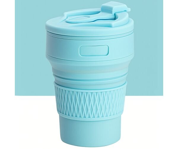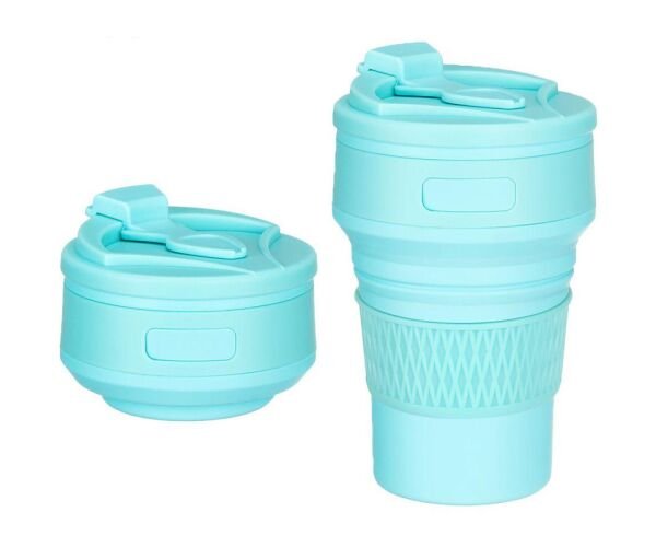 Характеристики: Тип: складаний стакан. Матеріал: харчовий силікон, пластик. Об’єм: 350 мл. Колір: блакитний. Призначення: для кави, чаю, води, подорожей, офісу, прогулянок.