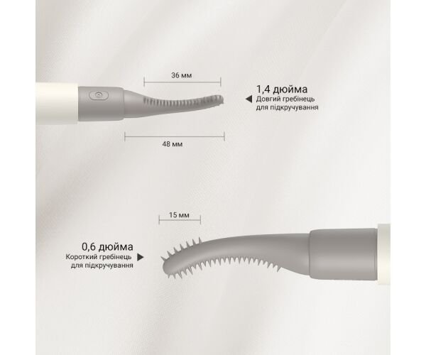 TOUCHBeauty TB-2117A оснащений подвійним гребінцем — довгим і коротким, що дозволяє опрацьовувати як центральну, так і крайові зони вій. Довгий гребінець (1,4 дюйма) ідеально підходить для більшої площі, а короткий (0,6 дюйма) дає можливість ретельно пропрацювати важкодоступні ділянки, створюючи рівномірний вигин по всій лінії росту вій.