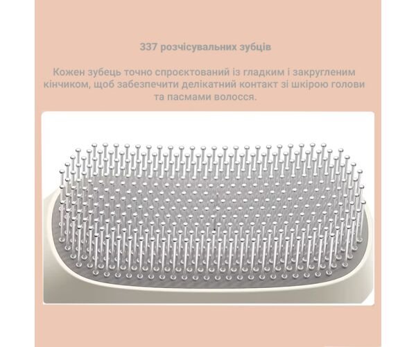 Щітка TOUCHBeauty TB-2441 розроблена з урахуванням анатомії шкіри голови та структури волосся. Її головка містить 337 масажних зубців, кожен з яких має згладжений кінець, що делікатно контактує зі шкірою, не травмуючи її. Така конструкція забезпечує м’яке прочісування навіть густого або кучерявого волосся.