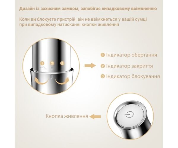 Окремо варто відзначити продуману систему захисного замка. Вона запобігає випадковому ввімкненню пристрою, наприклад, у сумці чи дорожньому чохлі, що особливо зручно під час транспортування.