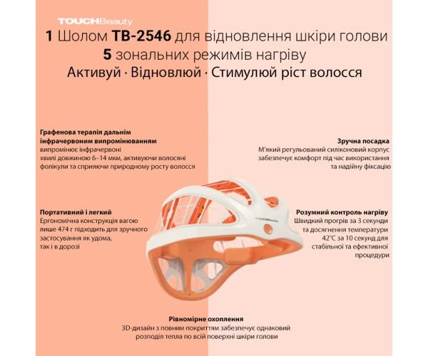 TOUCHBeauty TB-2546 – портативний шолом з інфрачервоним випромінюванням для відновлення шкіри голови та стимуляції росту волосся