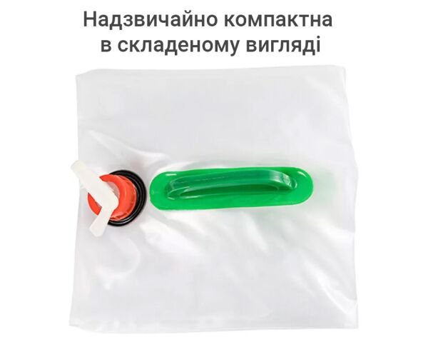 ViO PEVA-T — каністра для води 10 л з ручкою та краном — це зручний та практичний аксесуар для зберігання і транспортування води у домашніх умовах, на природі або в дорозі. Завдяки м’якому матеріалу каністра легко складається, що значно полегшує її зберігання та транспортування, а об’єм 10 літрів забезпечує достатню кількість води для різних потреб.