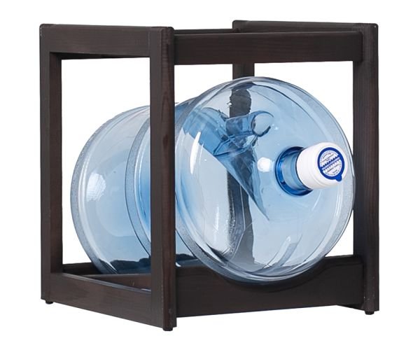 Дерев`яна полиця під 1 бутель об`ємом 18,9 літрів, виконана в прямокутній формі. Колір – венге. Розміри (висота, ширина, довжина) – 46 х 33 х 37 см. Компактна і стійка.